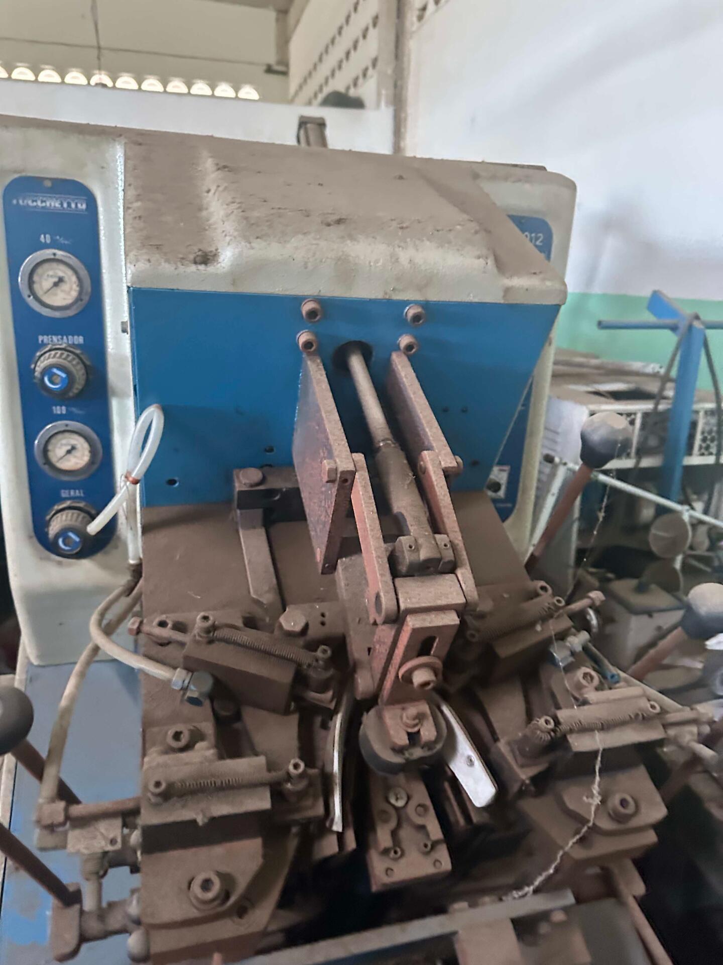 UMA MAQUINA DE MONTA BICO, DA MARCA TOCCHETTO TM-012-1000, EM BOM ESTADO DE CONSERVAÇÃO, FUNCIONANDO, DE COR AZUL E BRANCA.