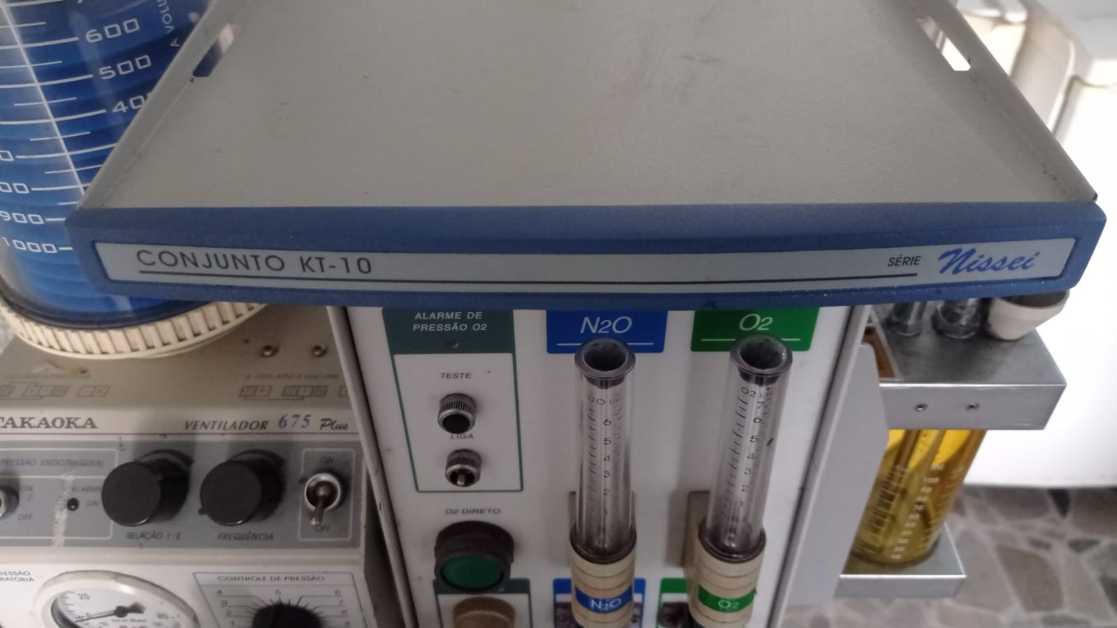 - 01 Aparelho de anestesia, marca TAKAOKA, completo, ventilador 675 plus, número de série 7444, em bom estado de conservação. Avaliado em R$60.000,00;