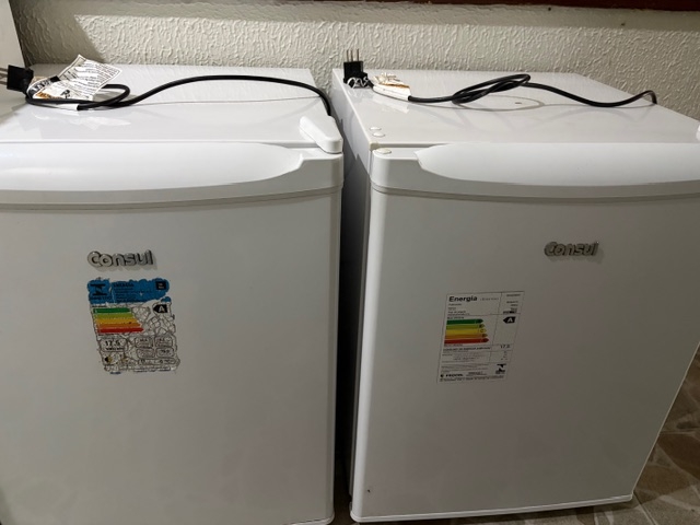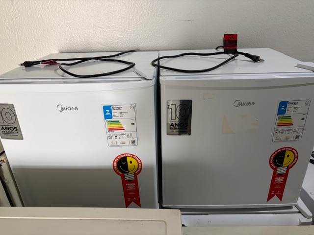 - 02 frigobar, marca midea, capacidade de 45 litros, cor branco, em bom estado de conservação. Avaliado cada em R$ 500,00. Total R$ 1.000,00;